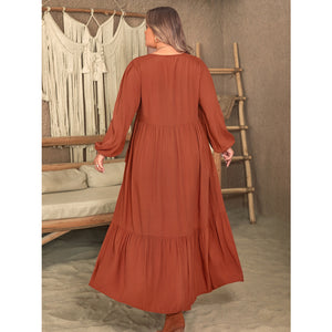 Plus Size Ruffled V-Neck Balloon Sleeve Dress