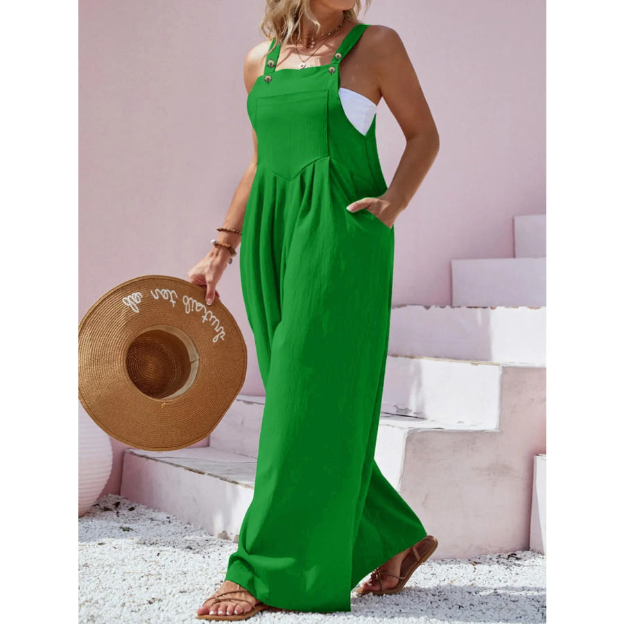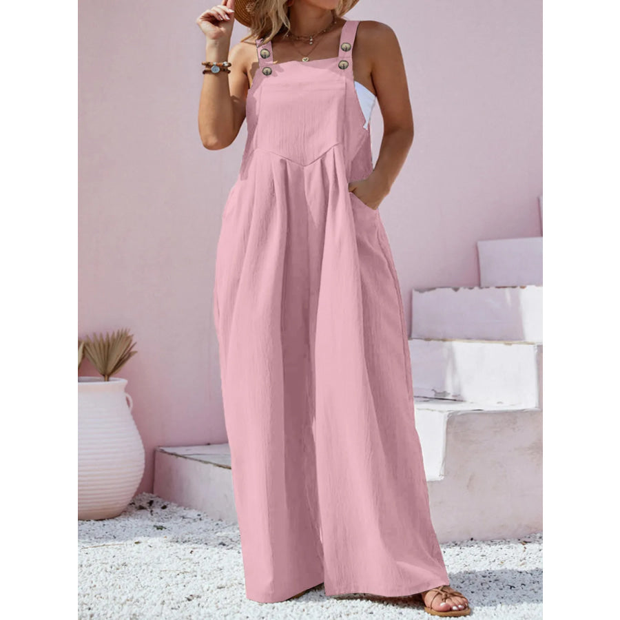 Plus Size Square Neck Wide Leg Overalls