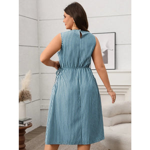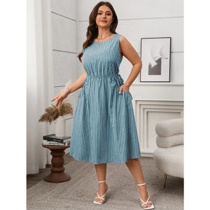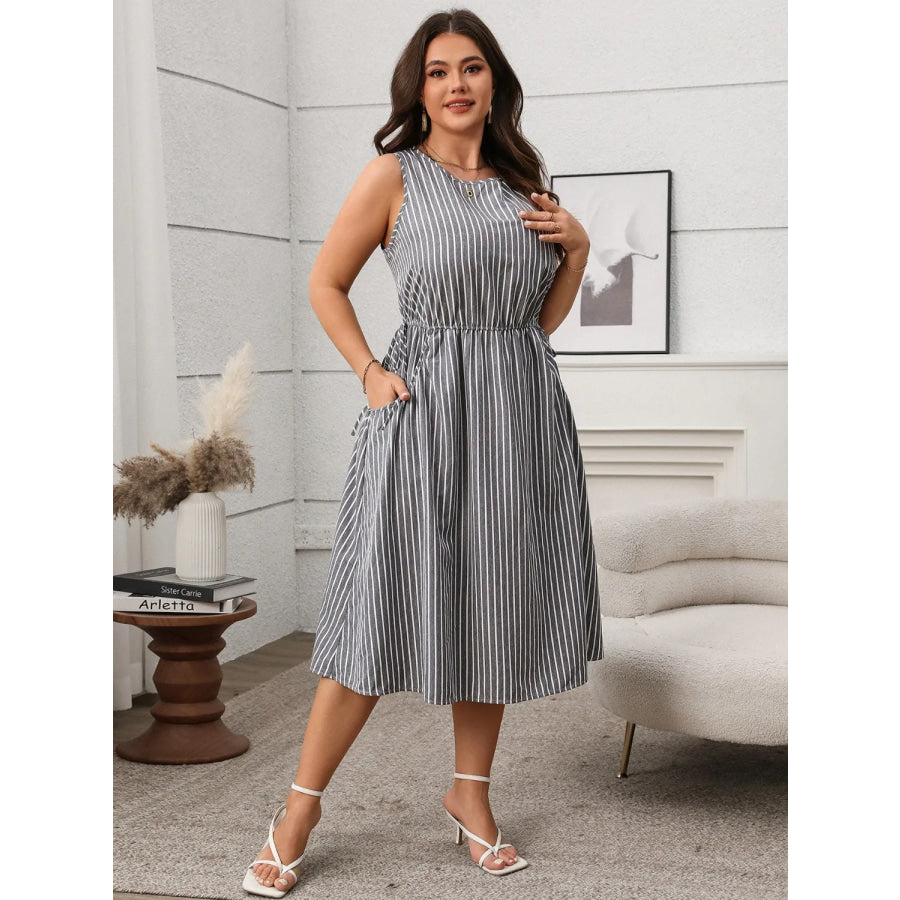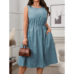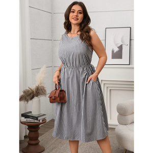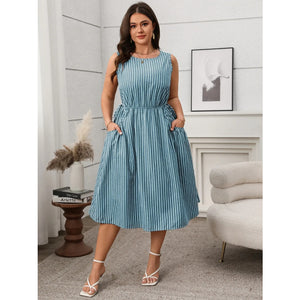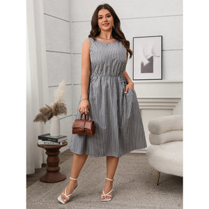 Plus Size Striped Round Neck Sleeveless Dress