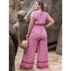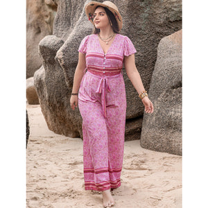 Plus Size V-Neck Cap Sleeve Wide Leg Jumpsuit