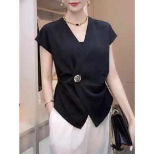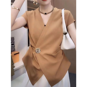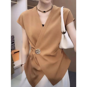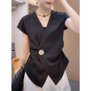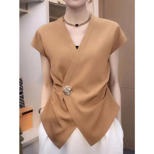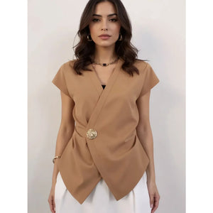 Plus Size Wrap Front Blouse with Decorative Button Detail