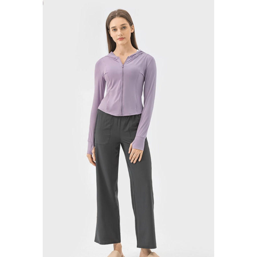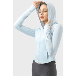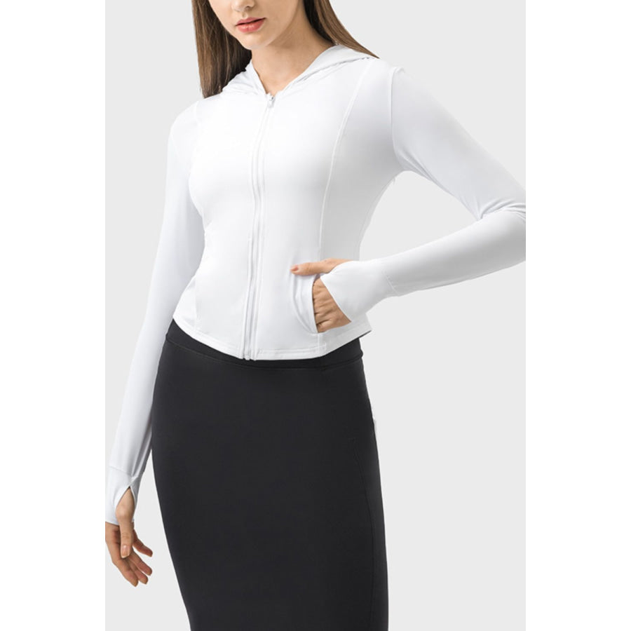 Pocketed Zip Up Hooded Long Sleeve Active Outerwear
