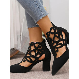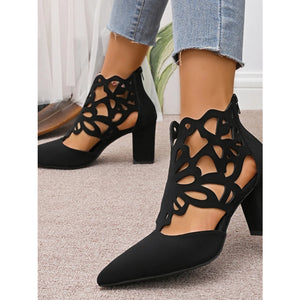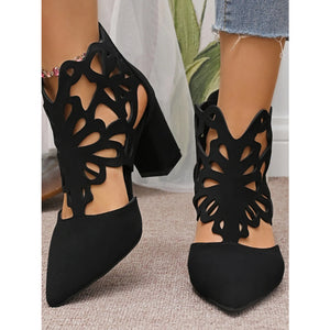 Pointed Toe Cut-Out Block Heel Pumps