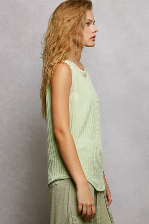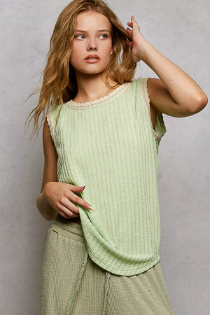 POL Ribbed Round Neck Tank with Lace Trim