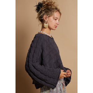 This semi-cropped top features a round neck and full sleeves, crafted from soft chenille sweater fabric for a cozy feel. The twisted cable detail adds a unique texture, enhancing its style with a pointed solid pattern. Perfect for pairing with high-waisted jeans or skirts, this top brings a chic and trendy vibe to any outfit. Ideal for cooler days, it combines comfort with a touch of elegance, making it a versatile addition to your wardrobe!