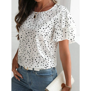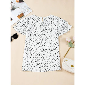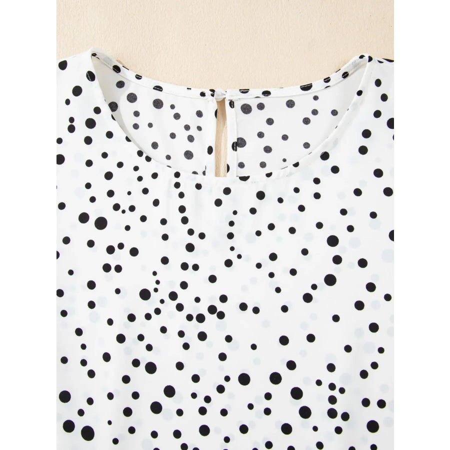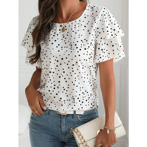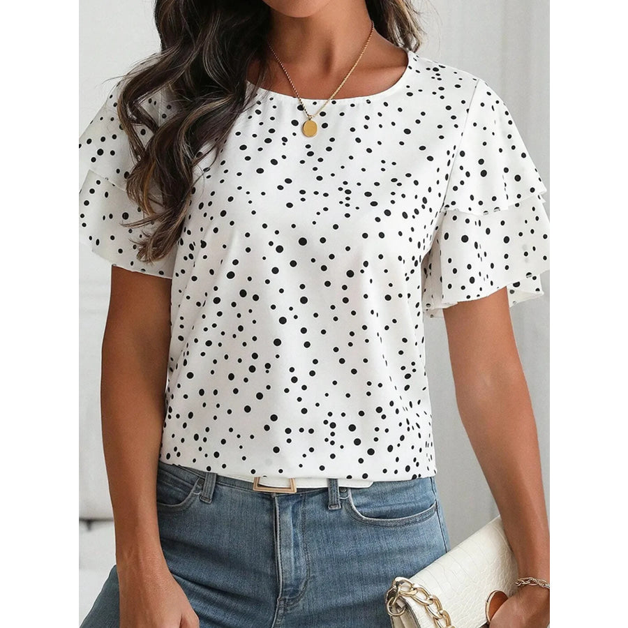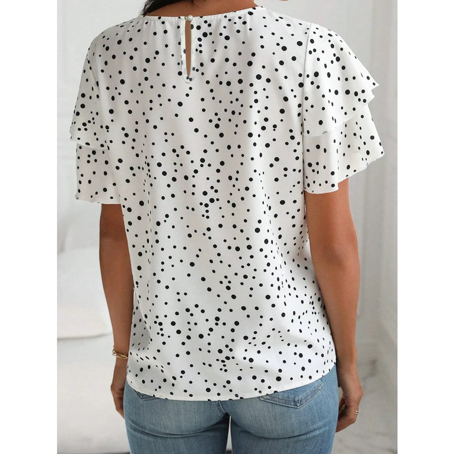 Polka Dot Layered Ruffled Short Sleeve Blouse