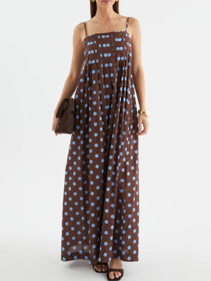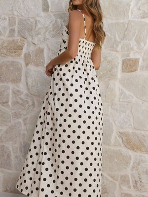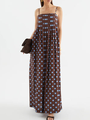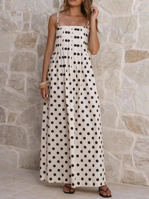 Polka Dot Pleated Detail Maxi Dress