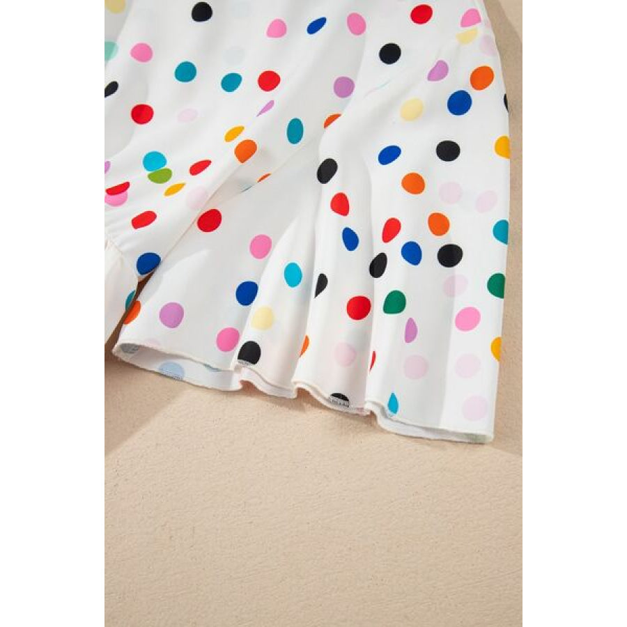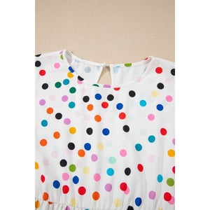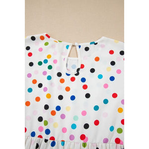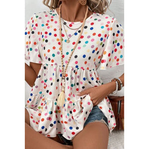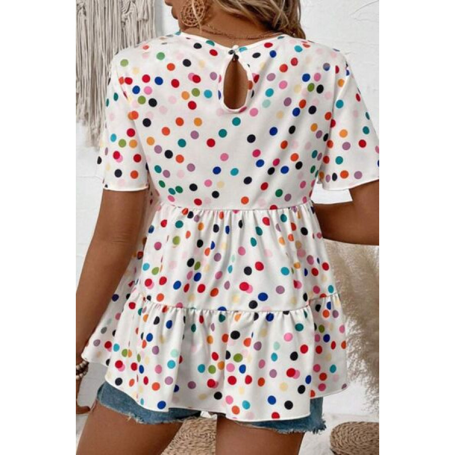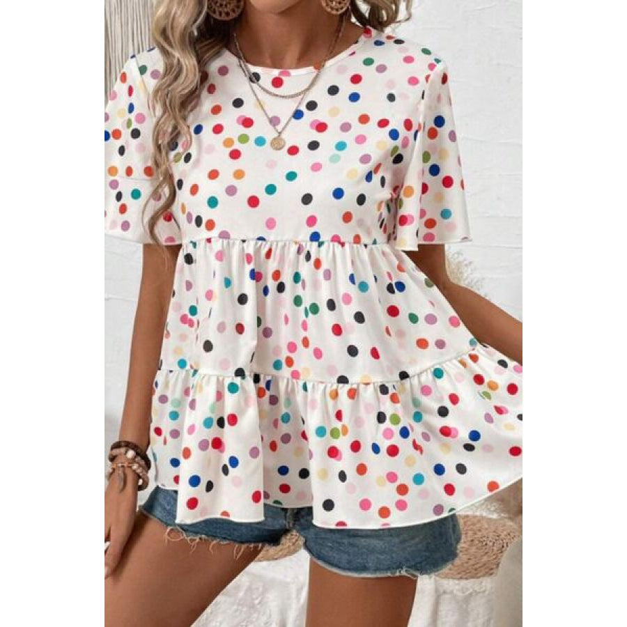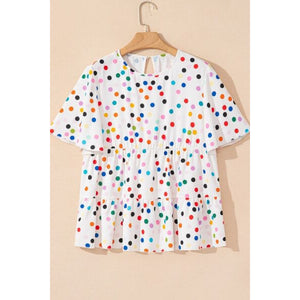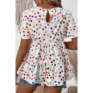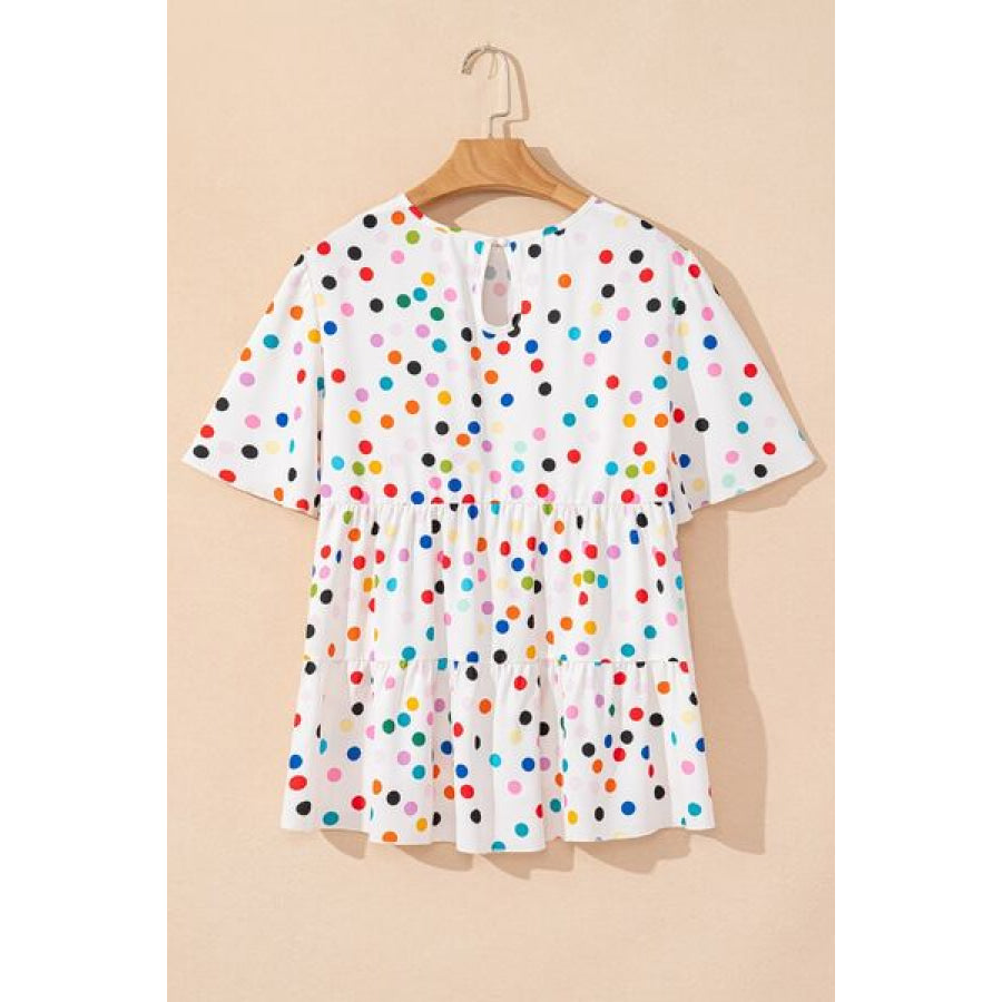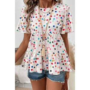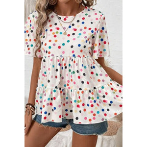 Polka Dot Short Sleeve Tiered Ruffled Babydoll Blouse
