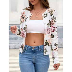 Printed Button Up Long Sleeve Cardigan