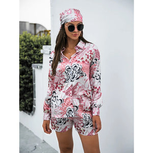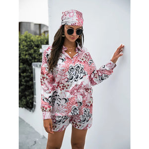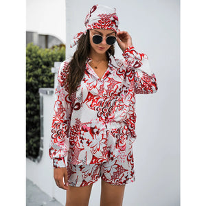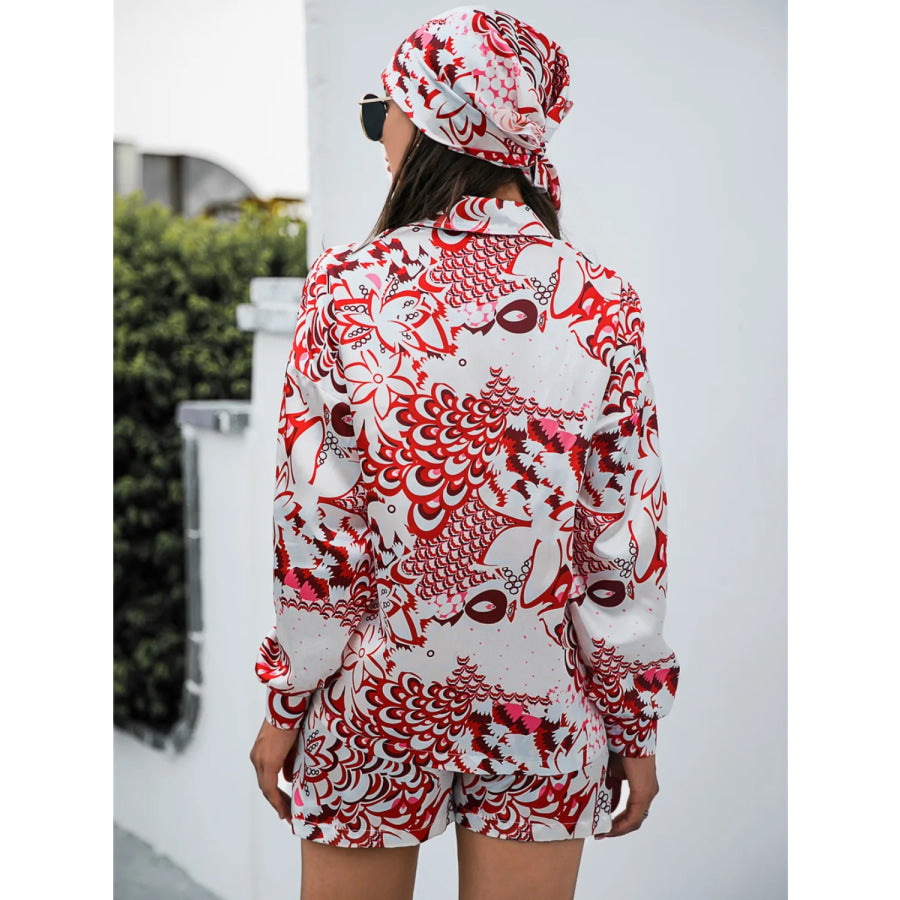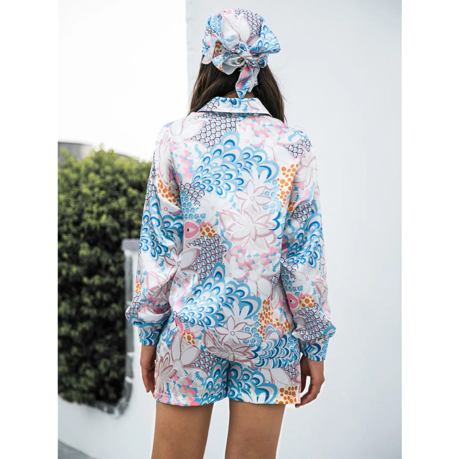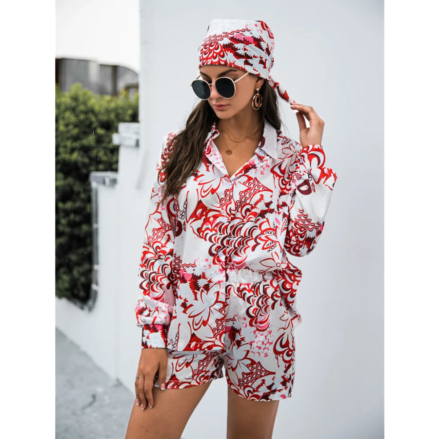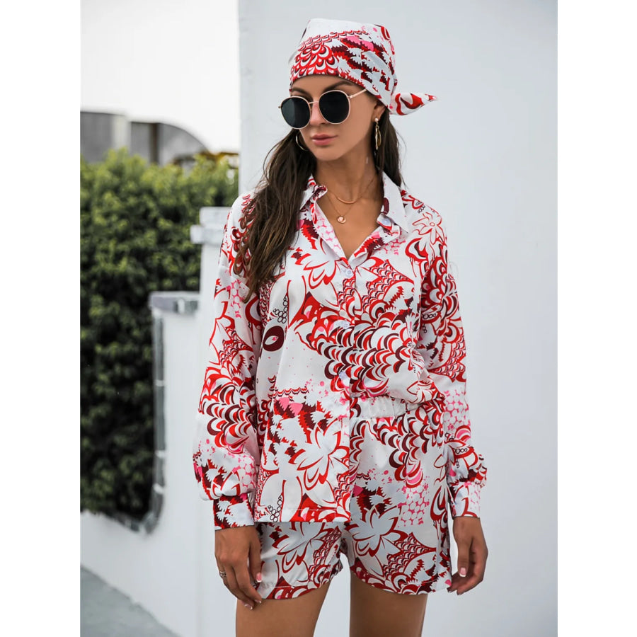 Printed Button Up Long Sleeve Shirt and Shorts Set