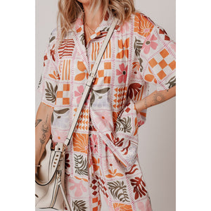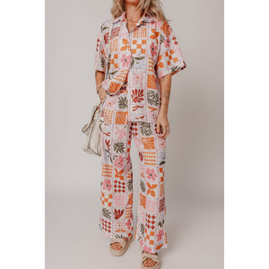 Printed Collared Neck Shirt and Wide Leg Pants Set