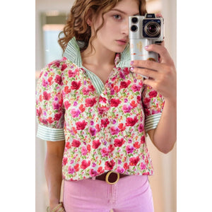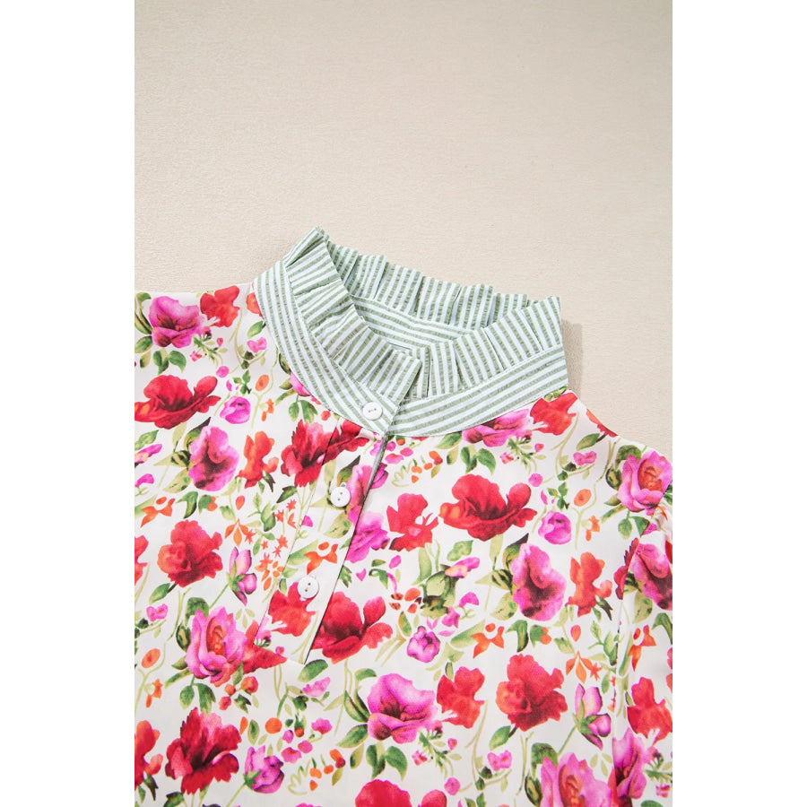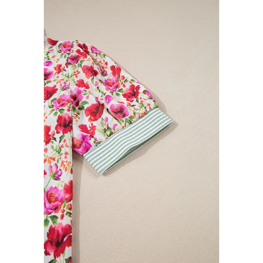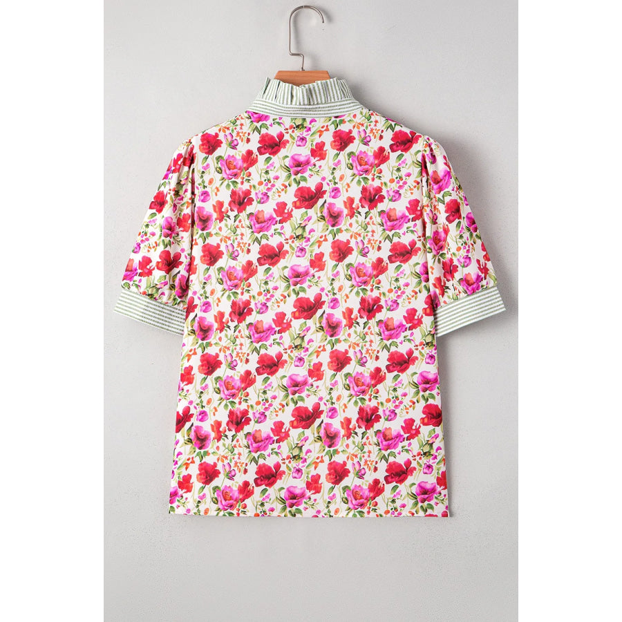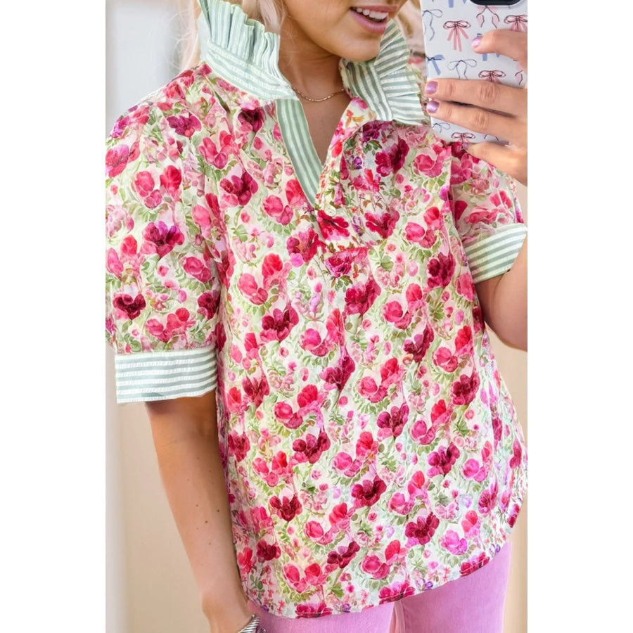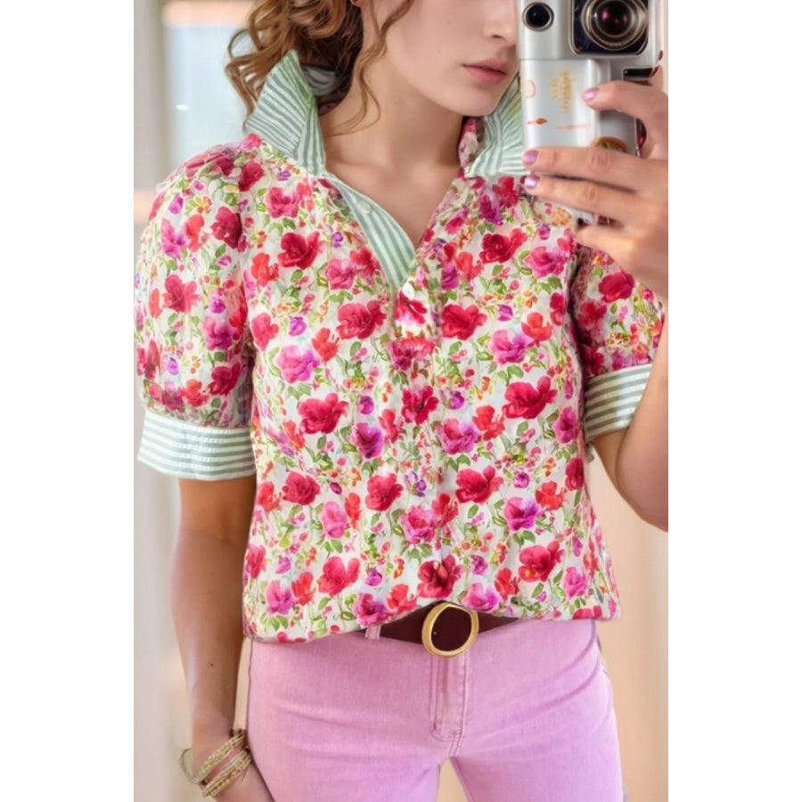 Printed Collared Neck Short Sleeve Blouse
