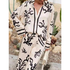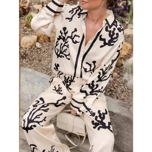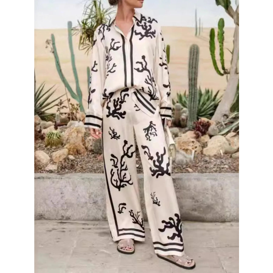 Printed Long Sleeve Shirt and Pants Set