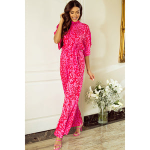 Printed Mock Neck Kimono Sleeve Jumpsuit
