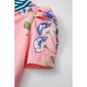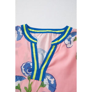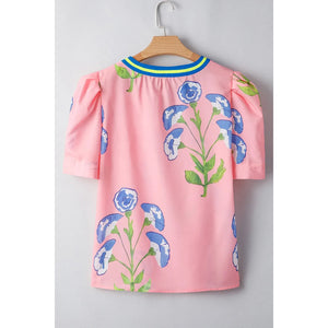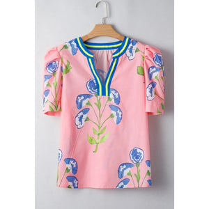 Printed Notched Puff Sleeve Blouse