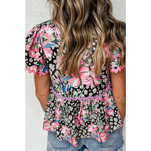 Printed Notched Short Sleeve Blouse
