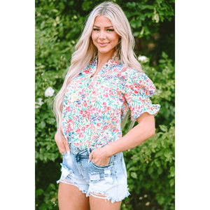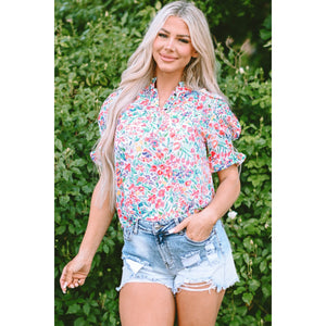 Printed Notched Short Sleeve Blouse
