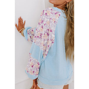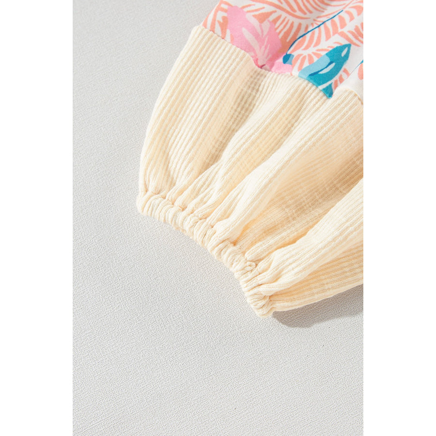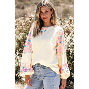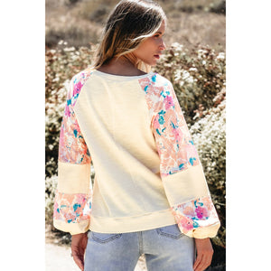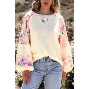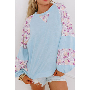 Printed Round Neck Balloon Sleeve Sweatshirt