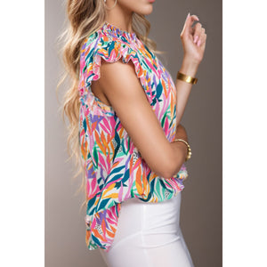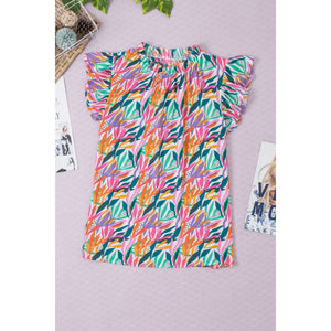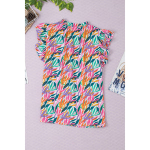 Printed Round Neck Cap Sleeve Blouse