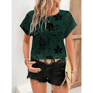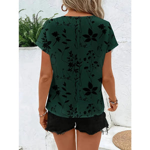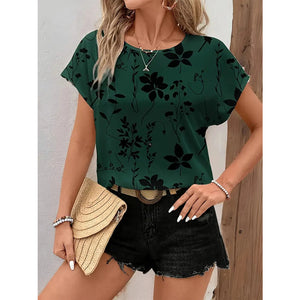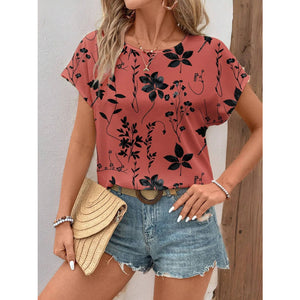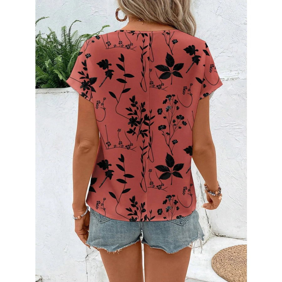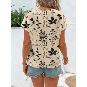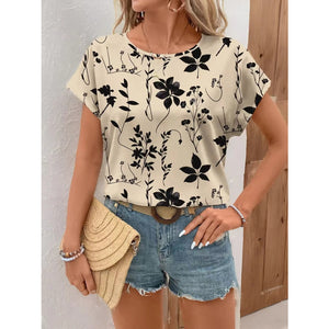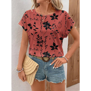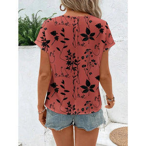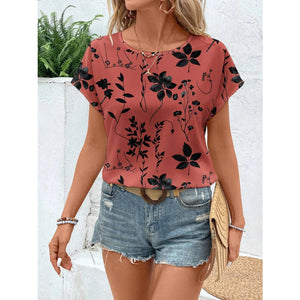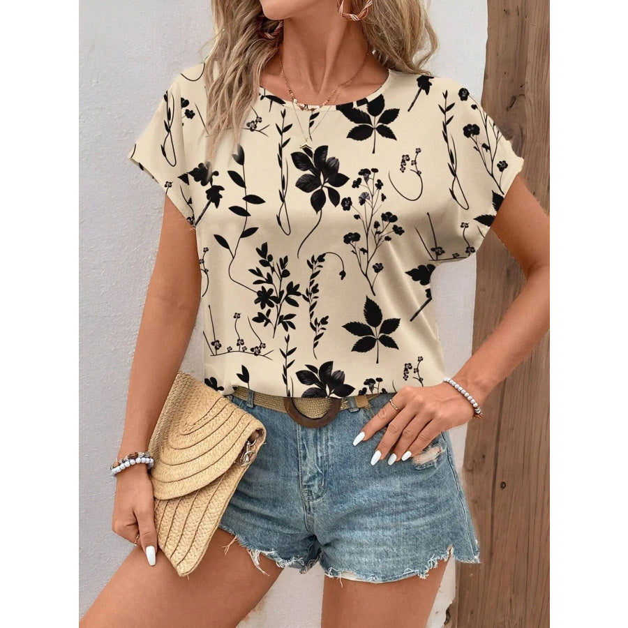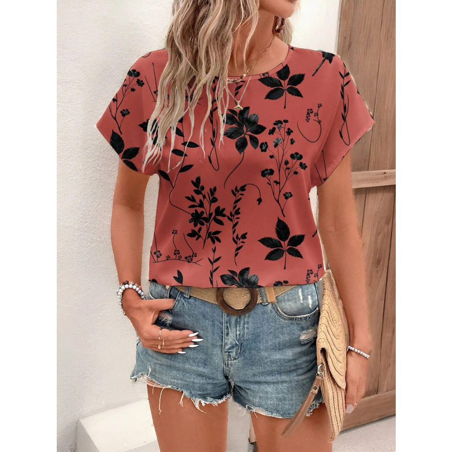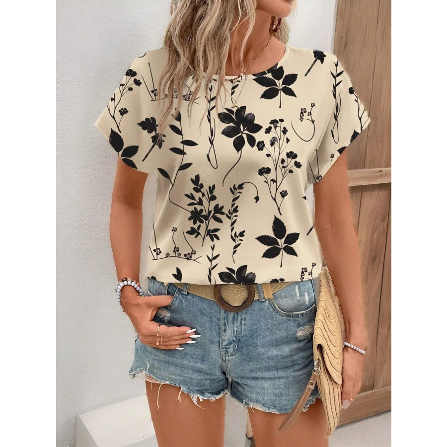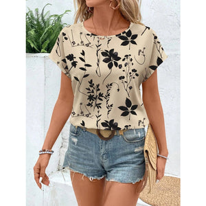 Printed Round Neck Short Sleeve Blouse
