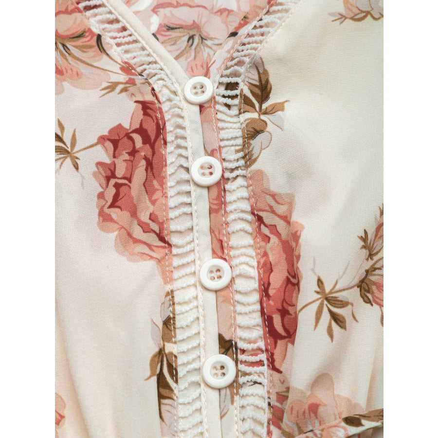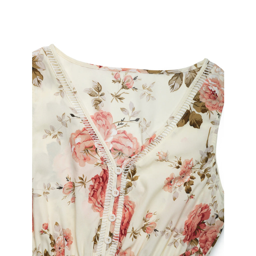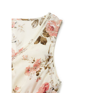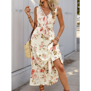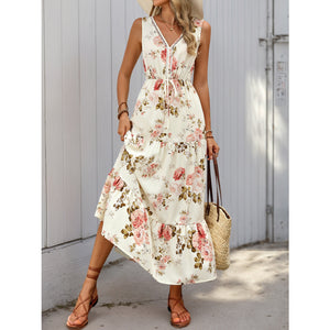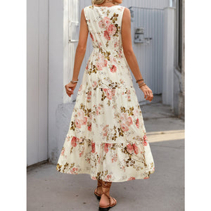 Printed Ruffled Hem V-Neck Sleeveless Dress