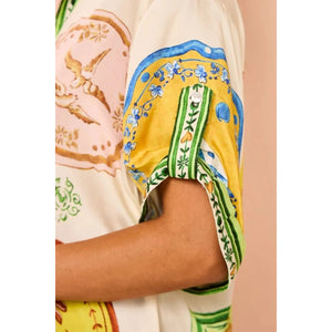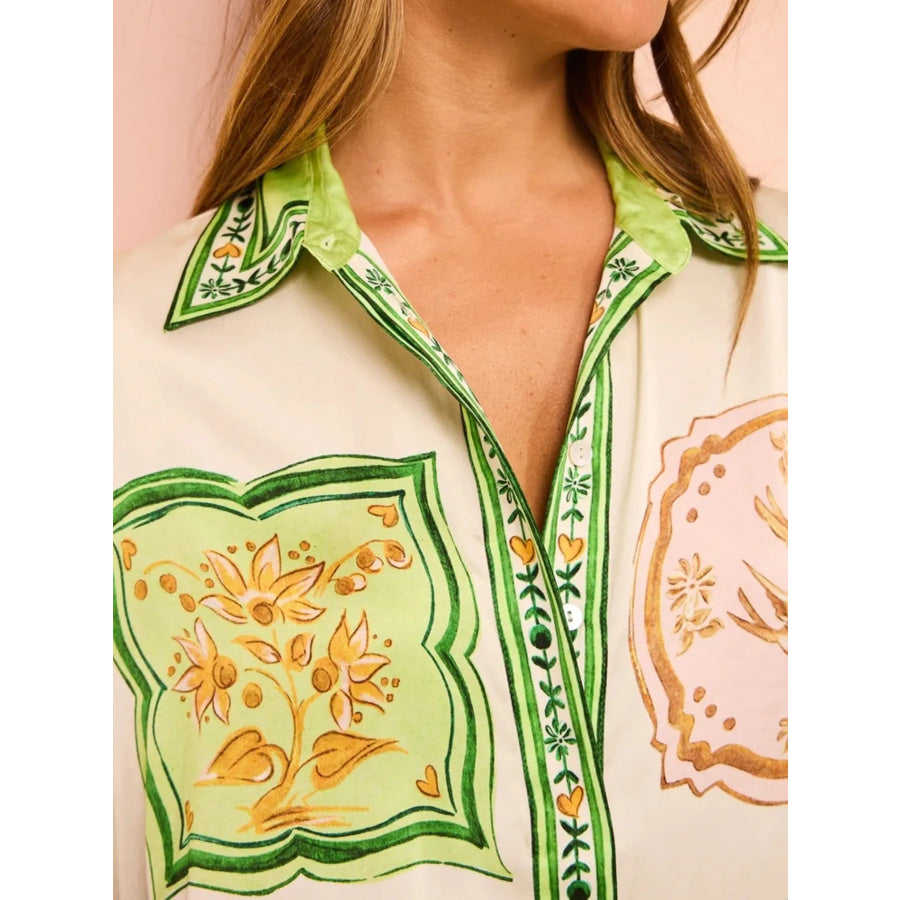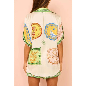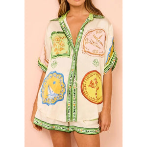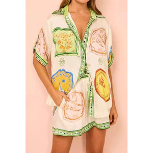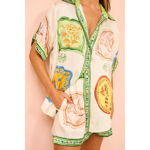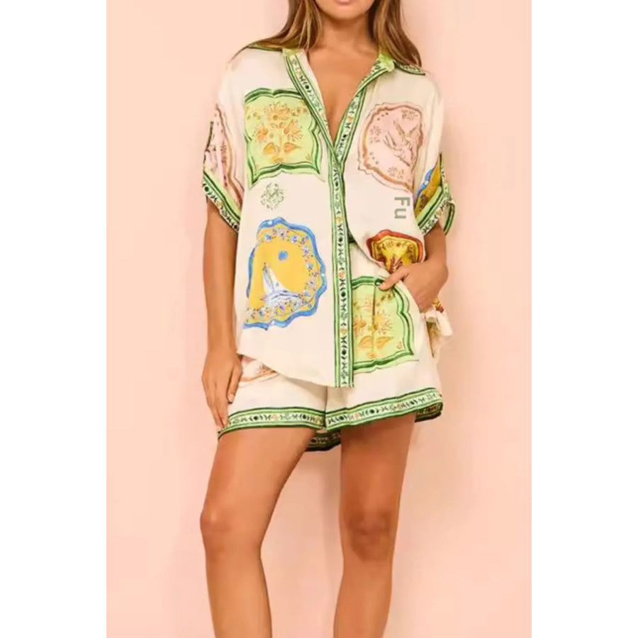 Printed Short Sleeve Button Down Top and Shorts Set