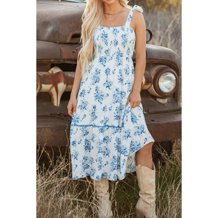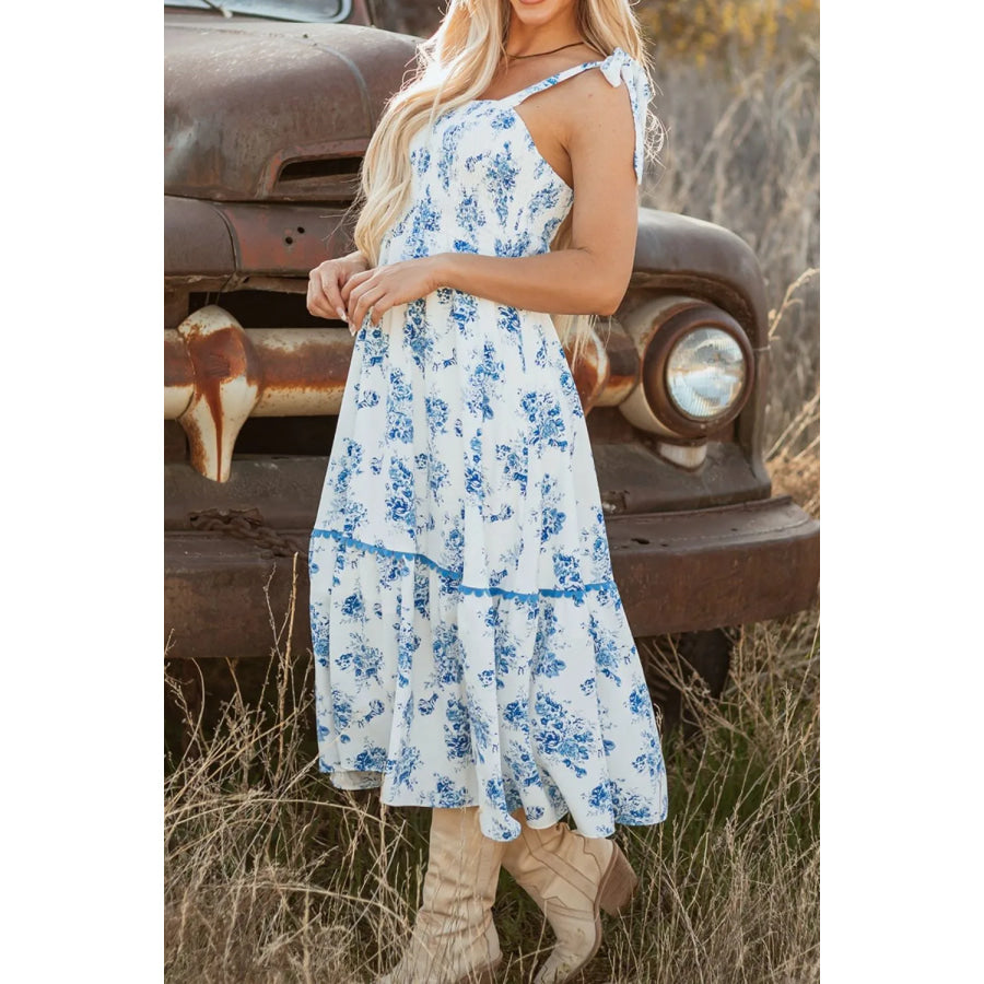 Printed Tie Shoulder Dress