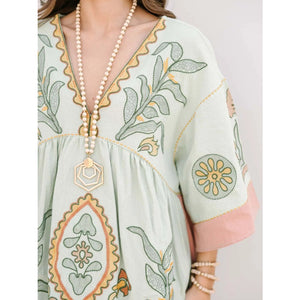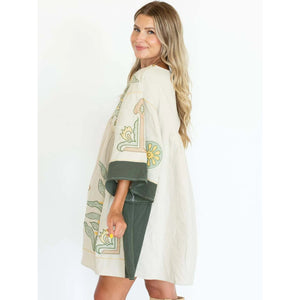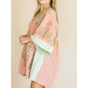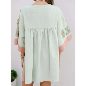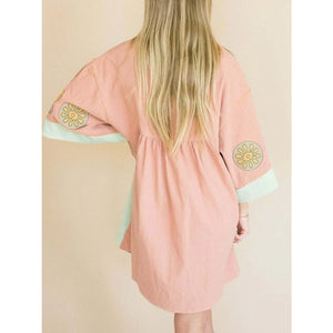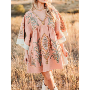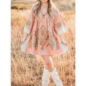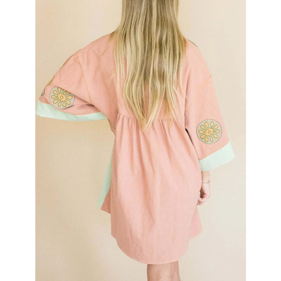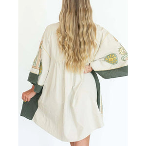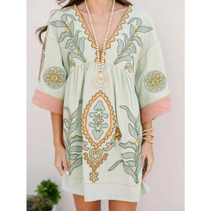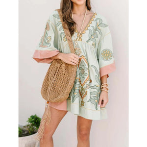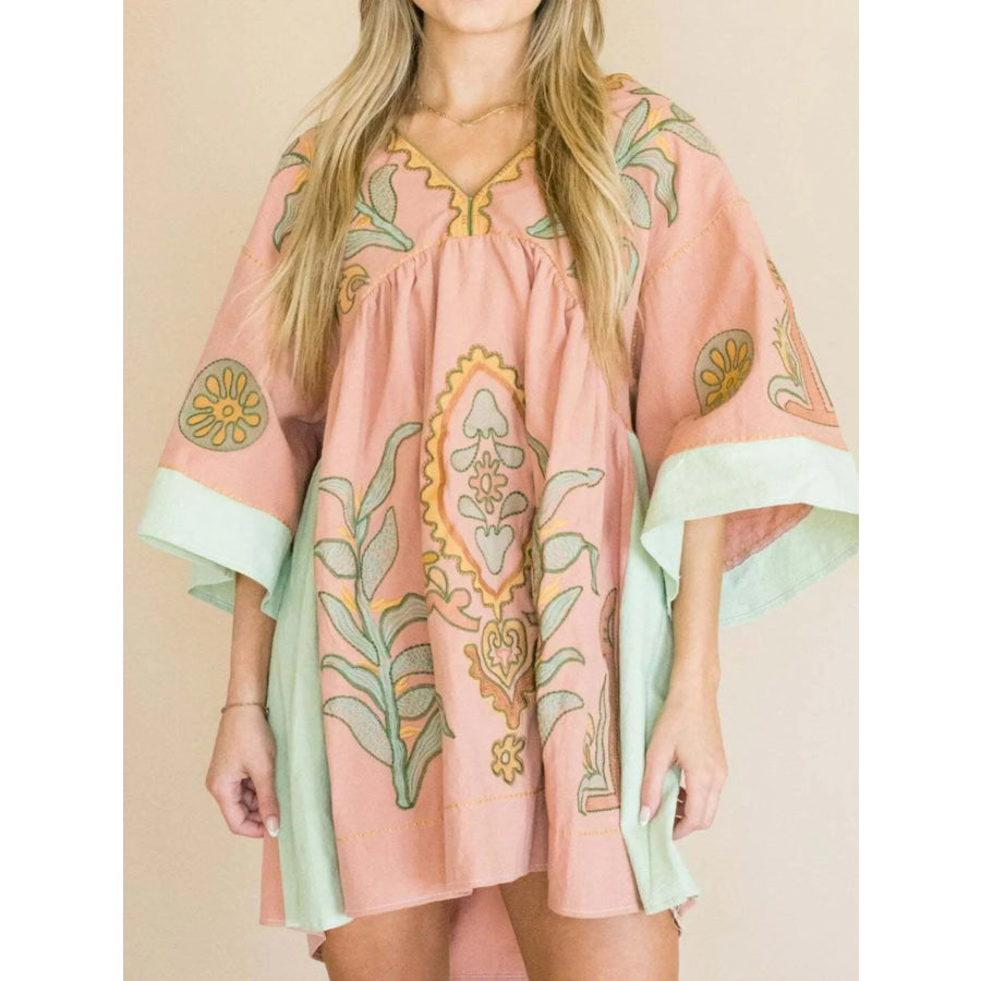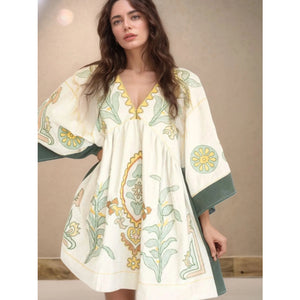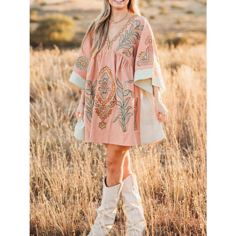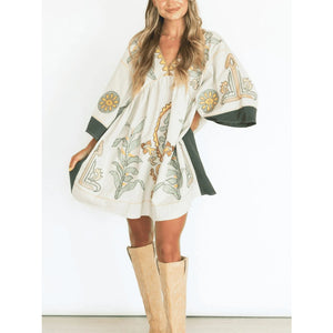 Printed V-Neck Kimono Sleeve Mini Dress