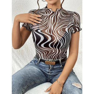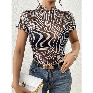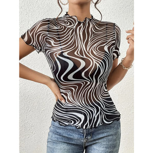 Psychedelic Wave Print Mock Neck T-Shirt