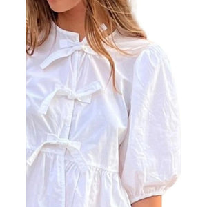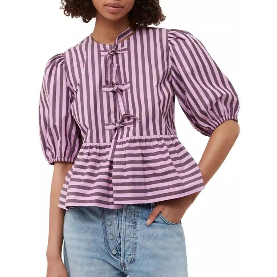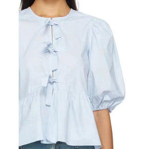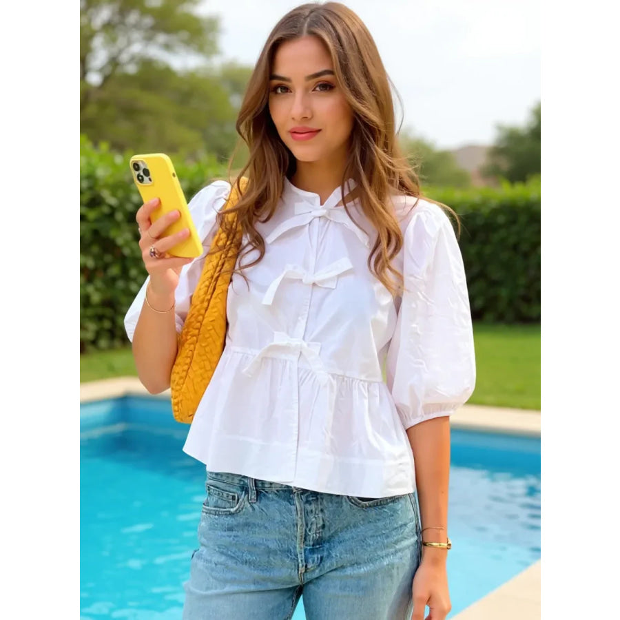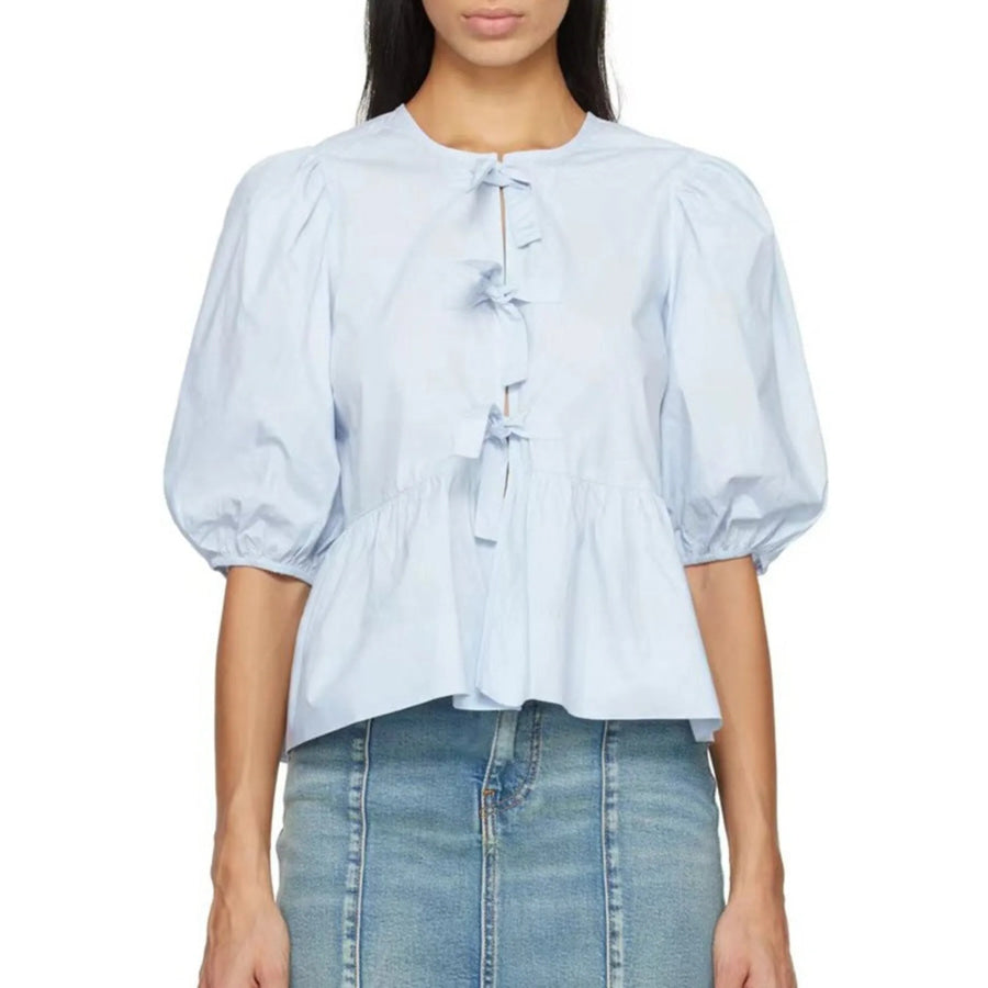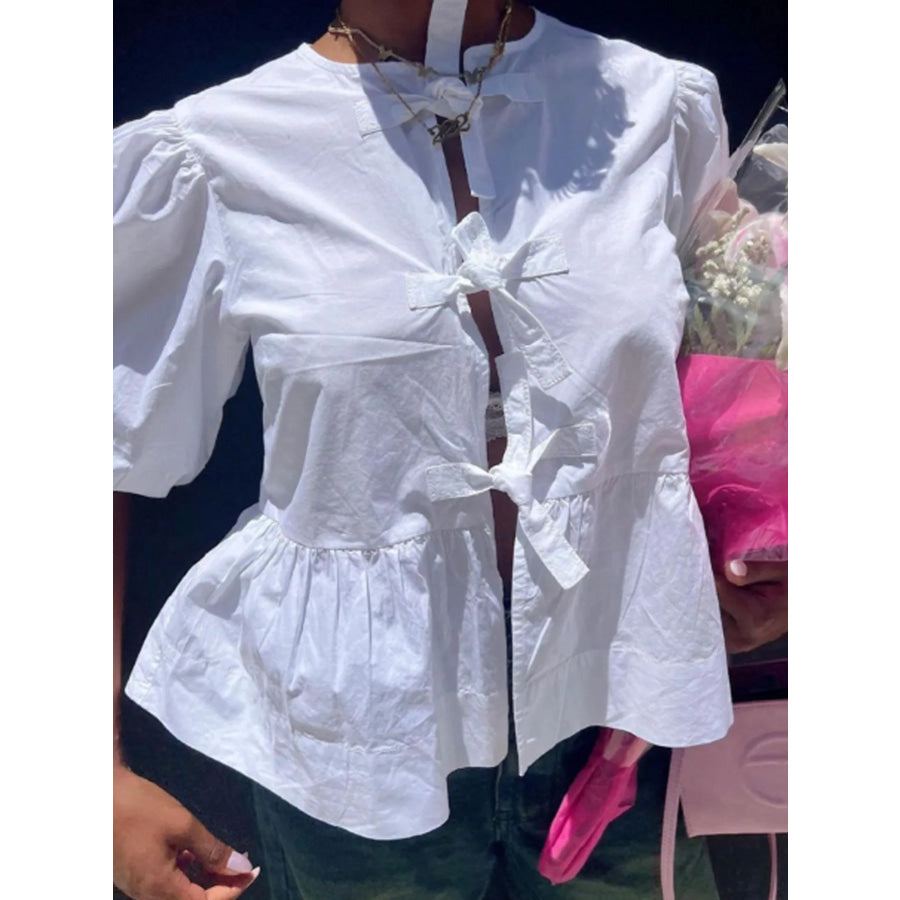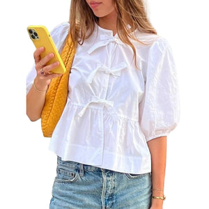 Puff Sleeve Bow Tie Blouse