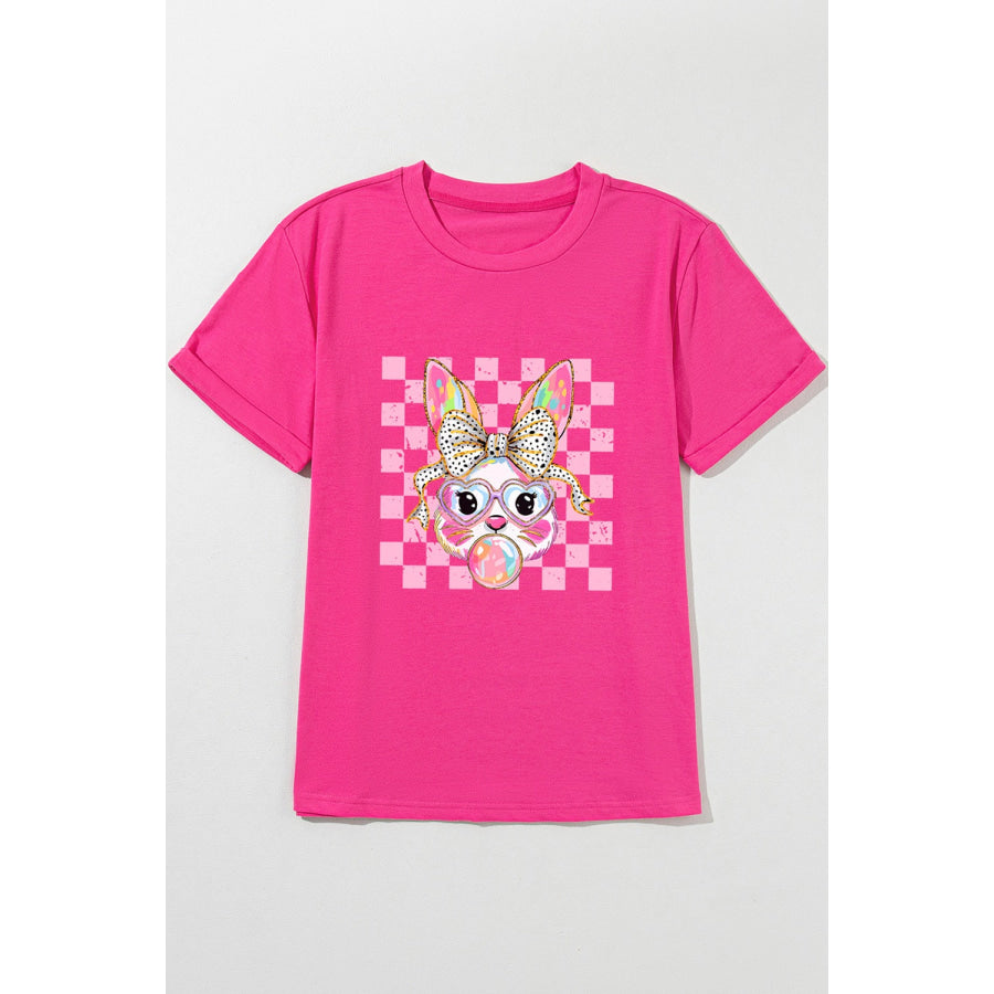 Rabbit Graphic Round Neck Short Sleeve T-Shirt