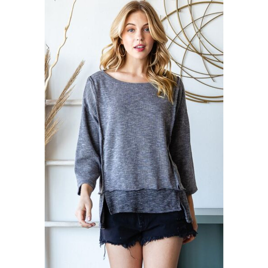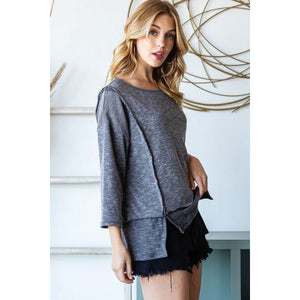 The Boat Neck Exposed Seam Slit Top is a modern and sophisticated piece that adds a unique twist to your wardrobe. The boat neck design showcases your collarbones and adds an elegant touch to your look. The exposed seam details give the top a contemporary edge, creating visual interest and making it stand out. The side slits add a subtle hint of sexiness and allow for ease of movement. Whether you pair it with jeans for a casual-chic vibe or dress it up with a skirt for a more polished ensemble, this top is a versatile choice that effortlessly elevates your style.