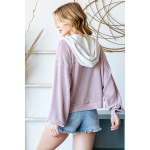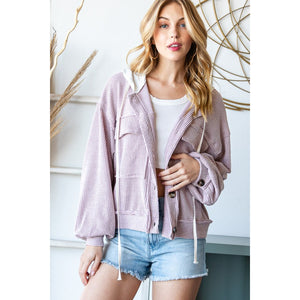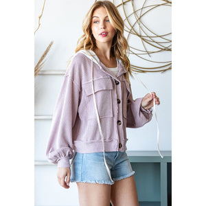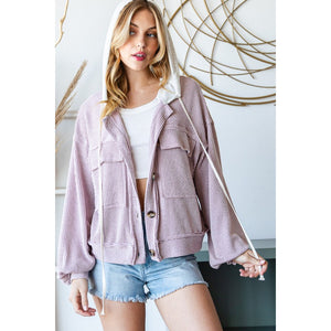 Reborn J Contrast Hooded Button Down Ribbed Jacket