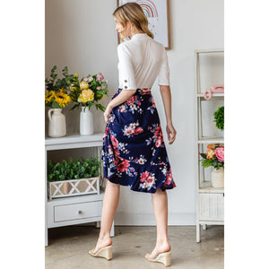 The floral wrap ruffle skirt is a feminine and stylish piece for your wardrobe. With a lovely floral print and delicate ruffle detailing, this skirt exudes charm and elegance. The wrap style adds a flattering and adjustable fit, while the ruffles bring a playful and romantic touch to the design. Pair this skirt with a simple blouse or a fitted top to highlight the wrap silhouette and ruffle accents. Perfect for both casual outings and more dressy occasions, the floral wrap ruffle skirt is a versatile and fashionable choice. Embrace your feminine side with this delightful and chic skirt!