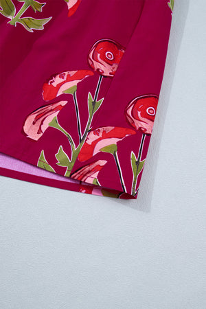 Red Floral Print Frilled V Neck Short Sleeve Ruffle Maxi Dress