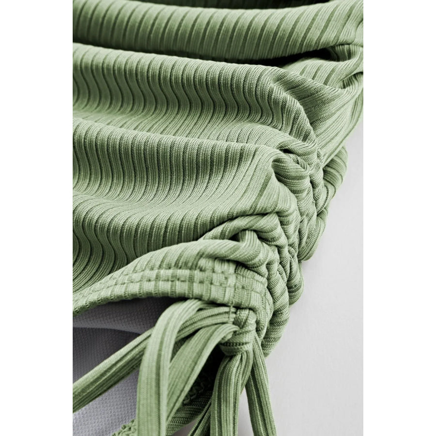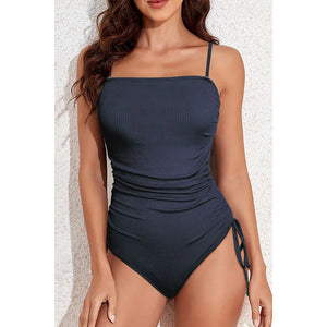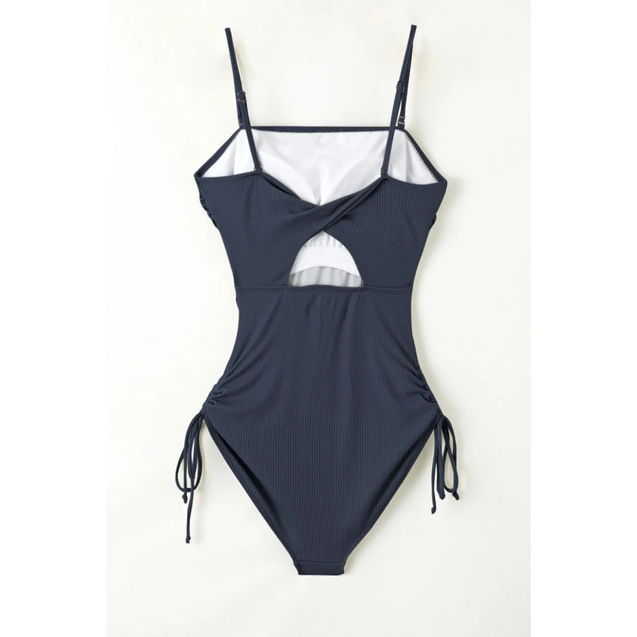 Ribbed Drawstring Sides Cutout One Piece Swimsuit