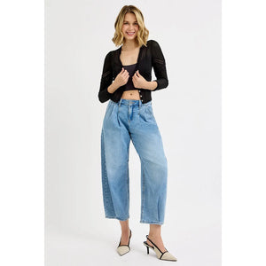 RISEN Full Size Mid Rise Fit Crop Wide Volume Leg Jeans Plus Size