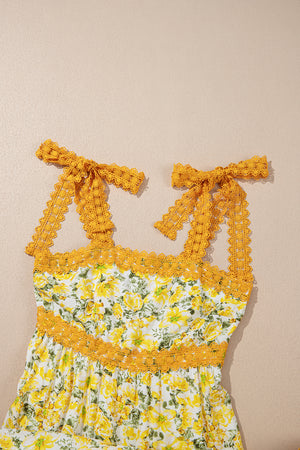 Rose Floral Lace Tied Strap Empire Waist Maxi Dress