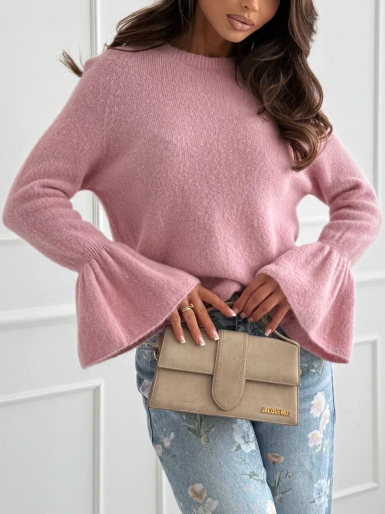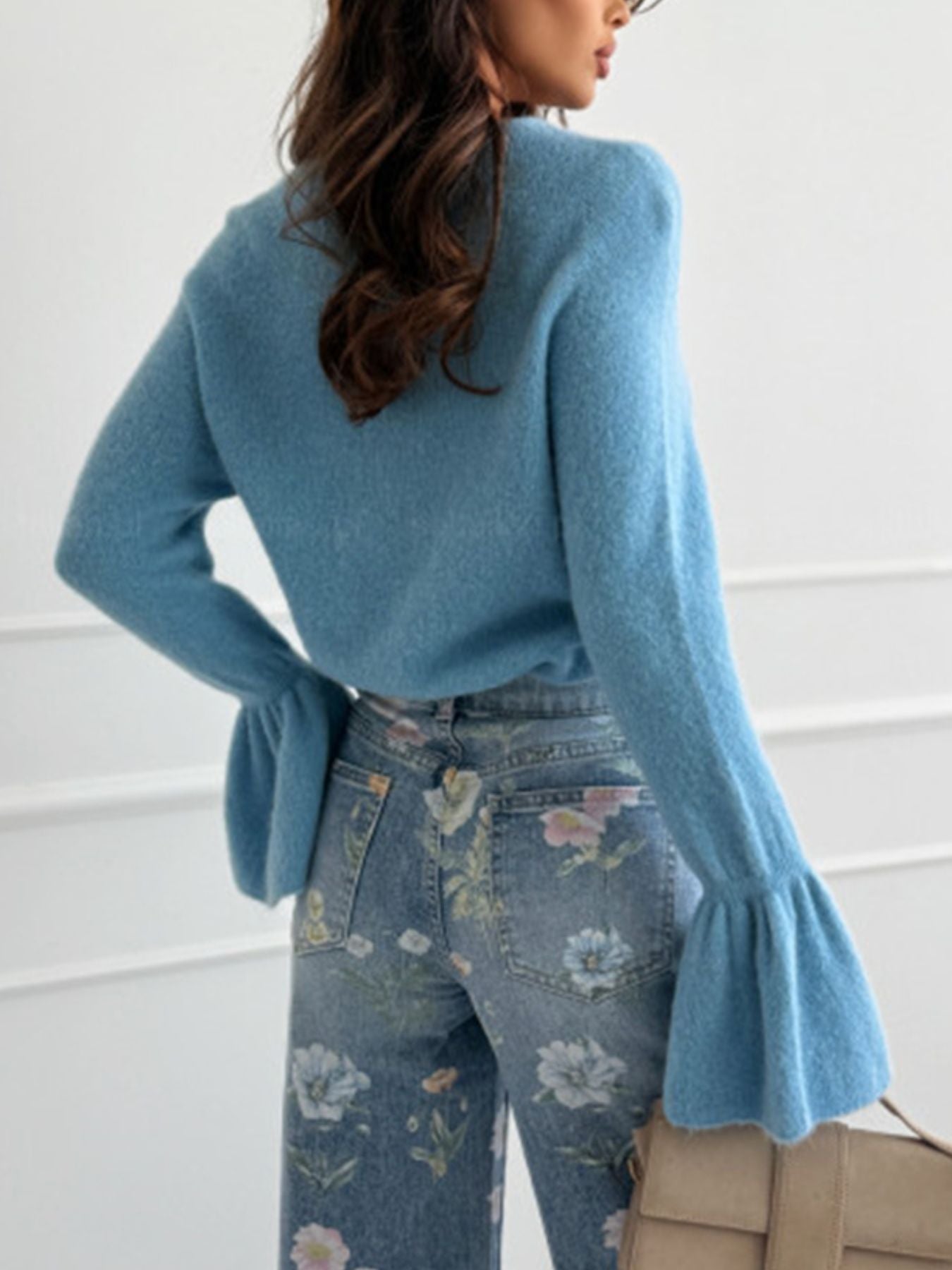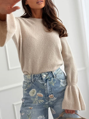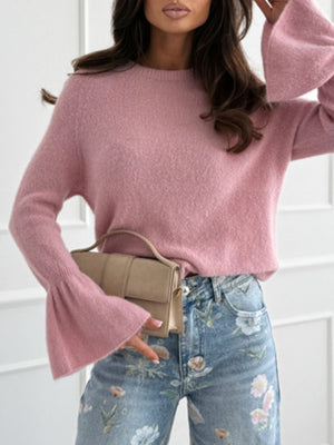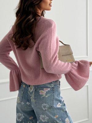 Round Neck Flounce Sleeve Sweater