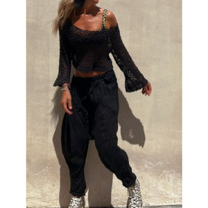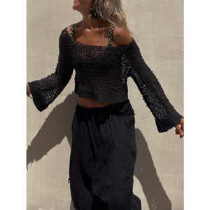 Round Neck Long Sleeve Knit Cover Up