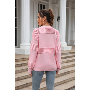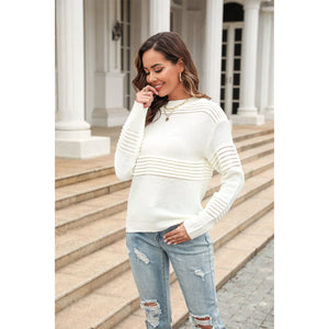Round Neck Openwork Long Sleeve Pullover Sweater