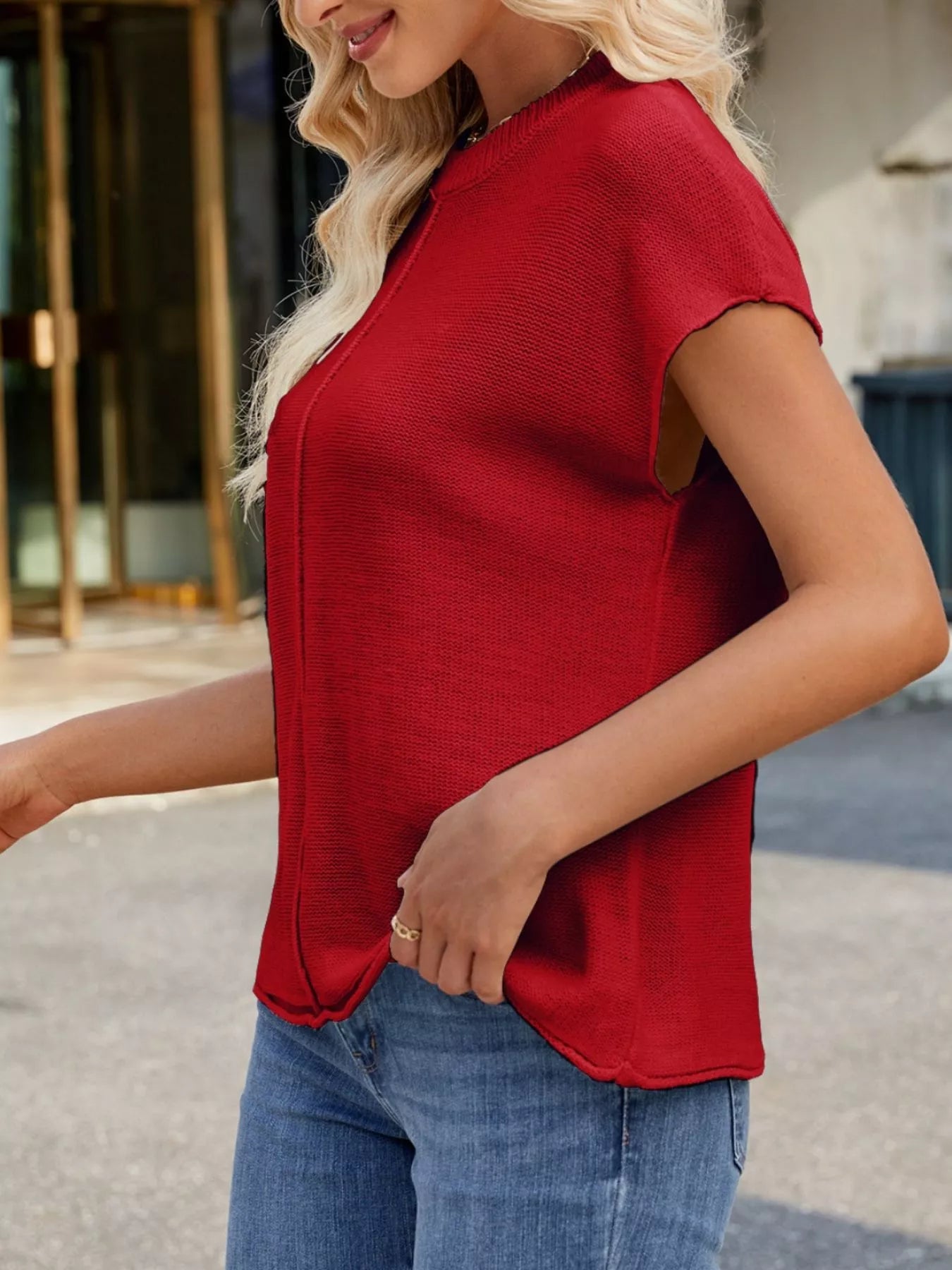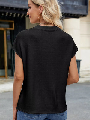 Round Neck Short Sleeve Knit Top with Center Seam Detail