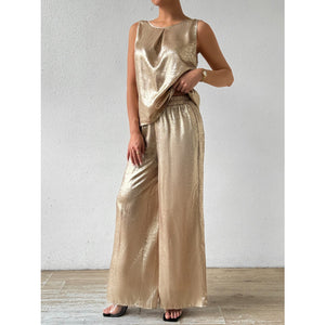 Round Neck Sleeveless Top and Pants Set