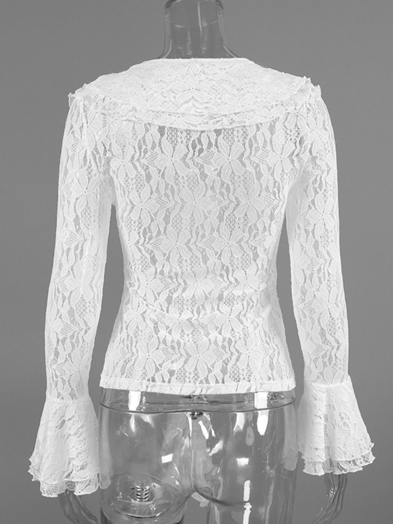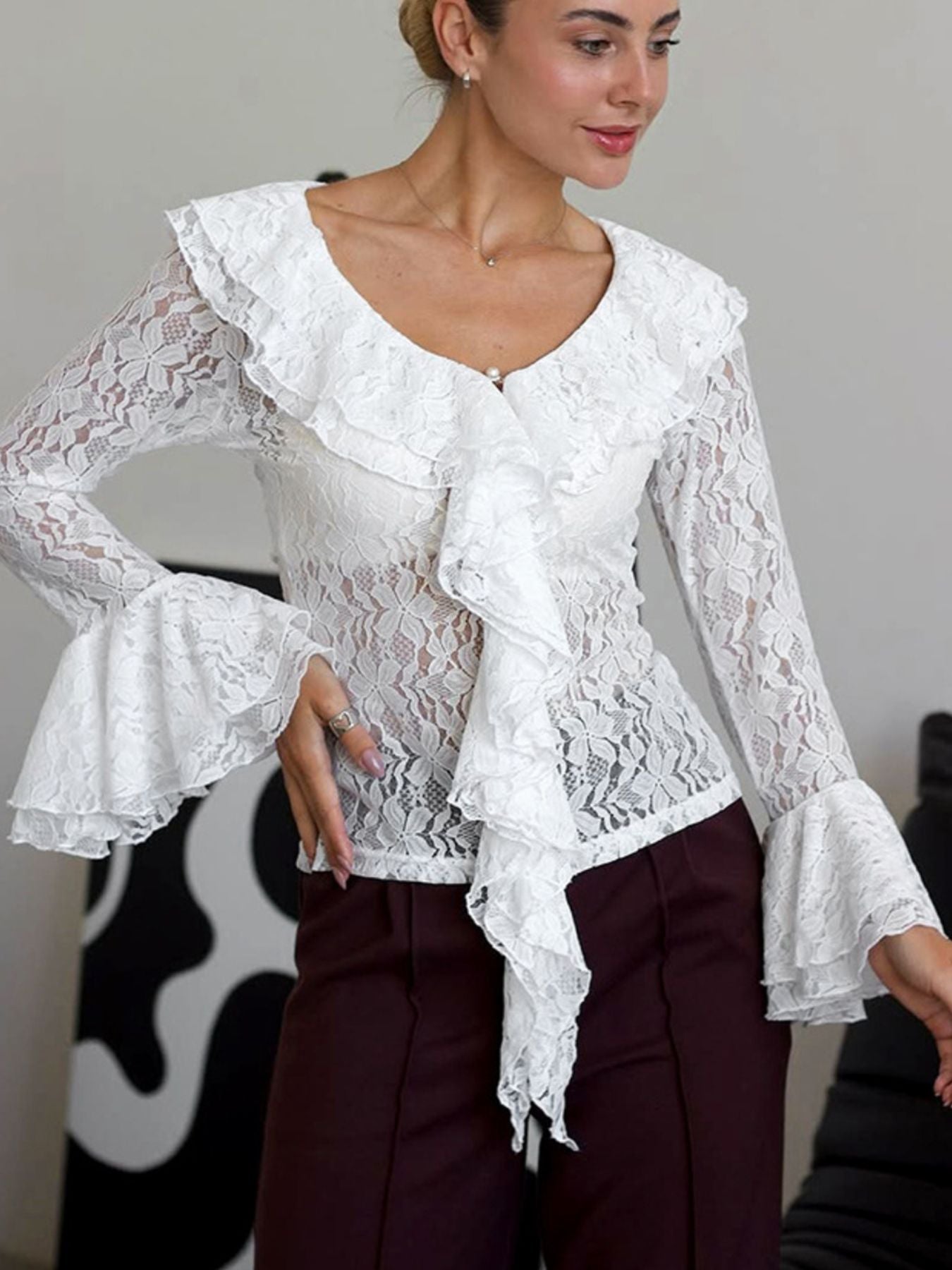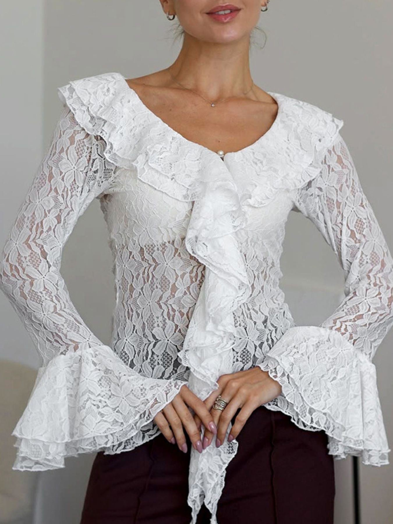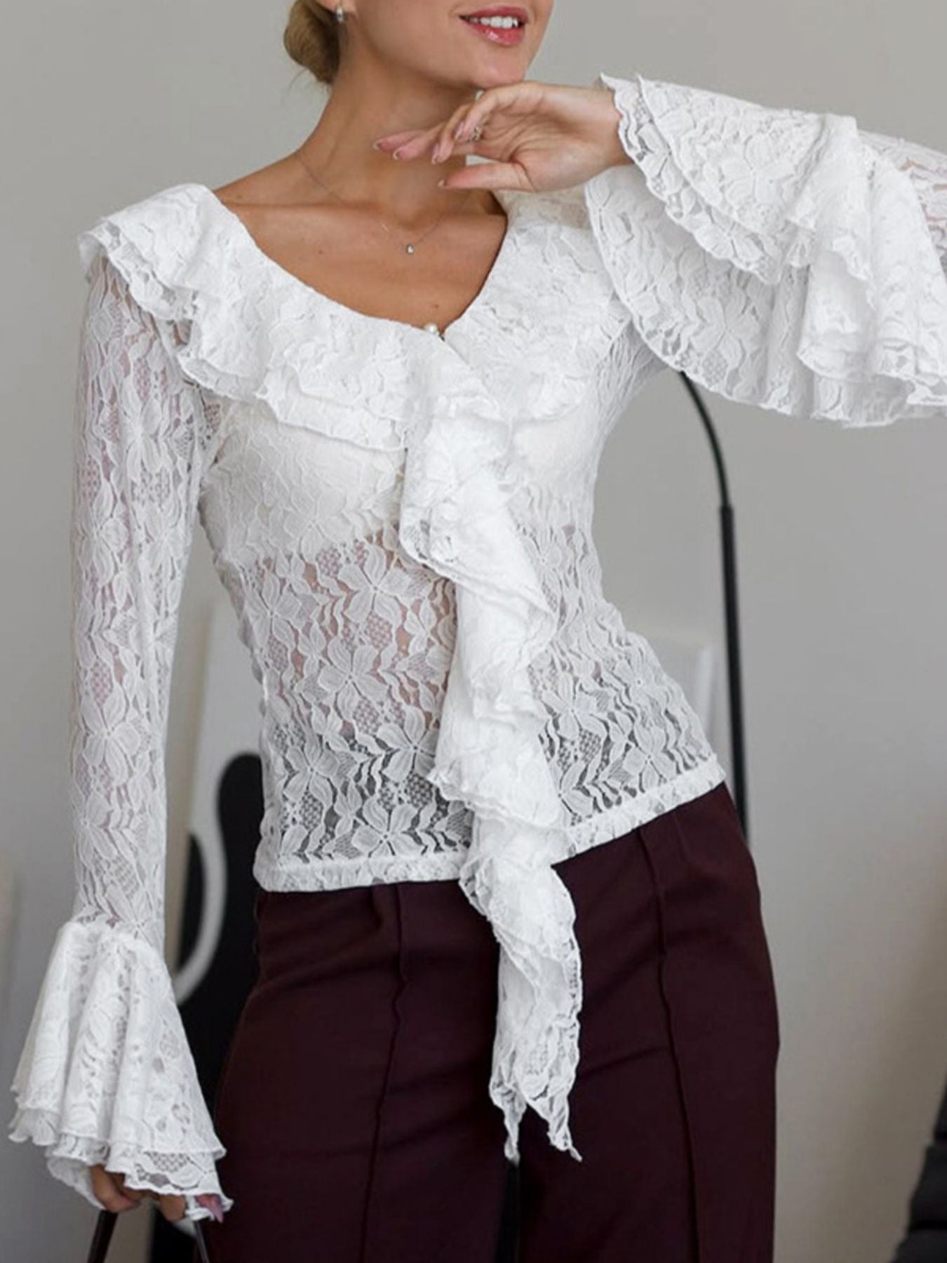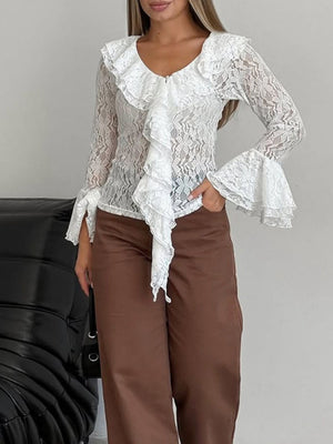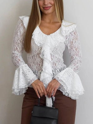 Ruffle Lace Flounce Sleeve Blouse