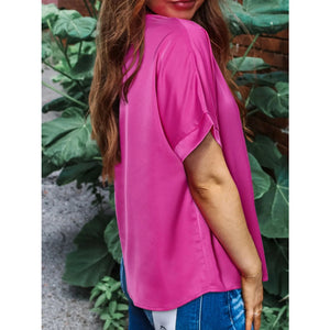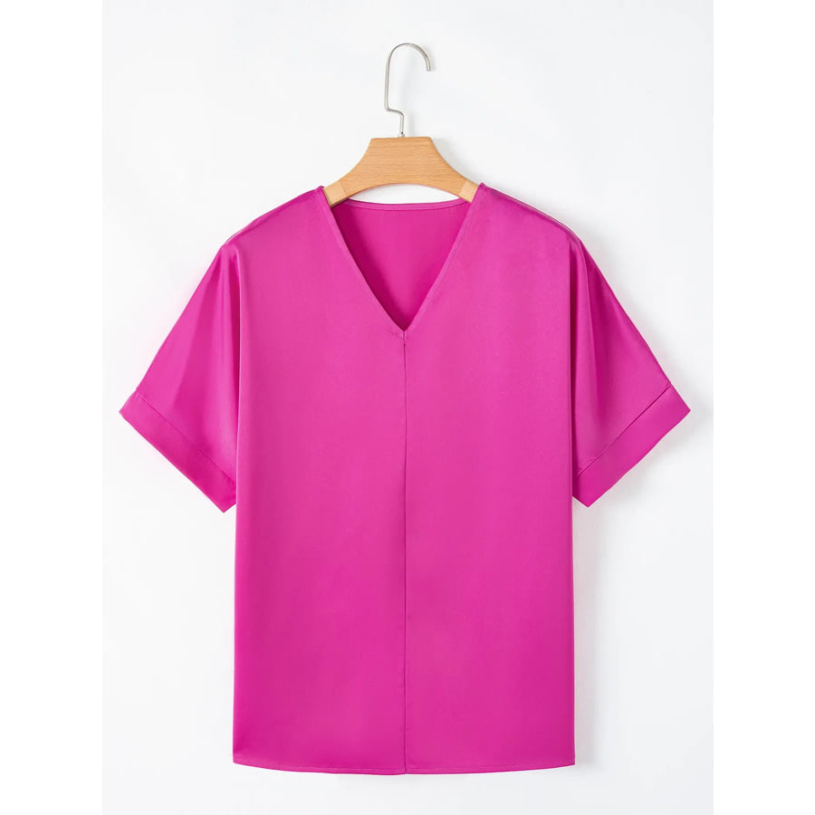 Silky V Neck Dolman Sleeve Blouse