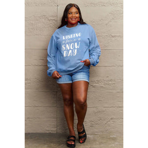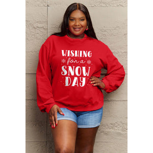 Simply Love Full Size WISHING FOR A SNOW DAY Round Neck Sweatshirt