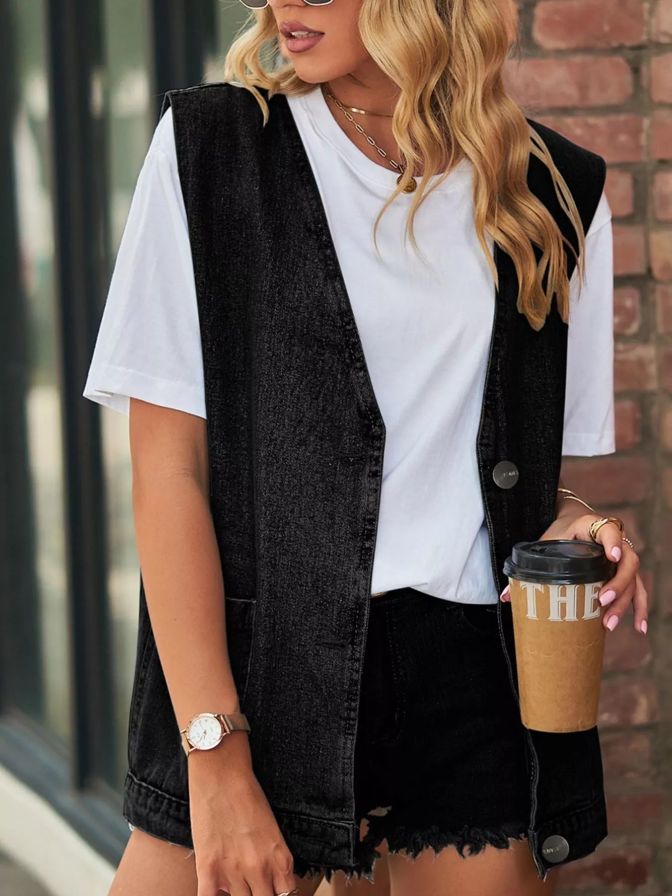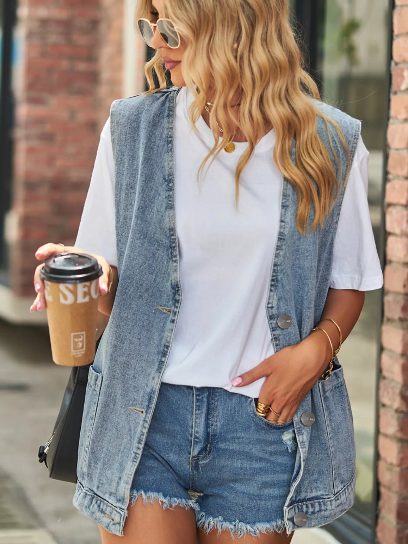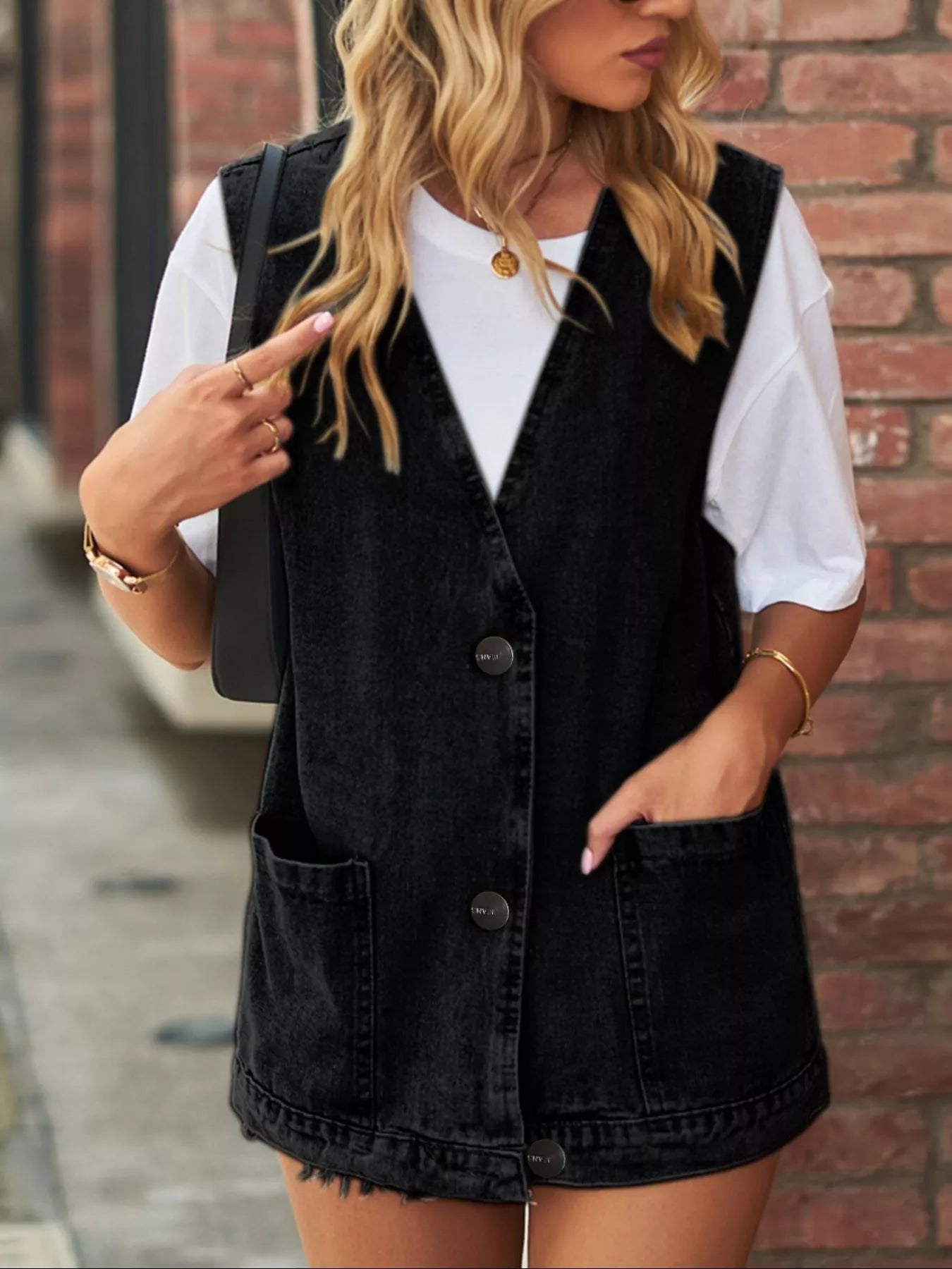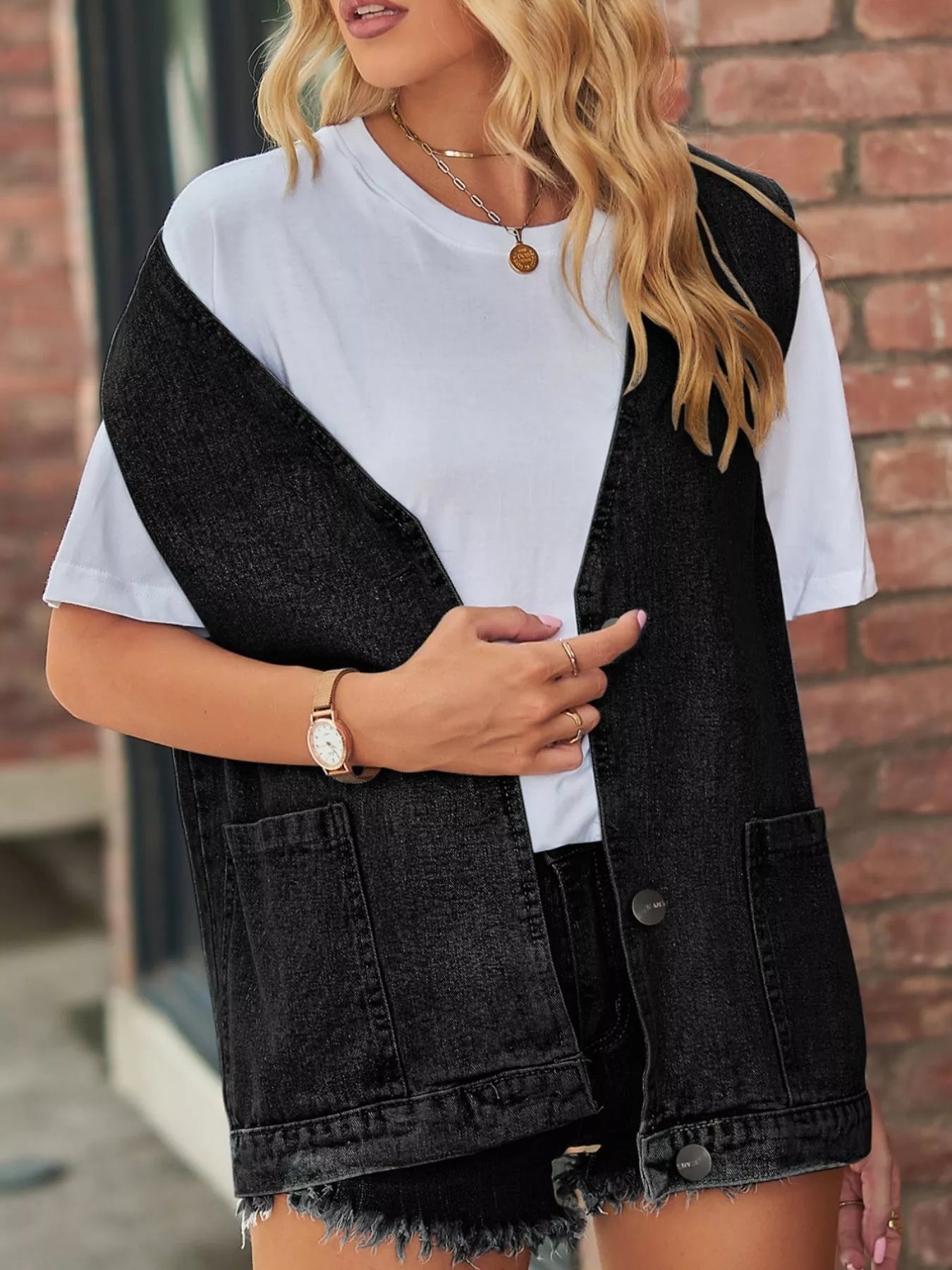 Sleeveless Button-Down Denim Jacket Vest