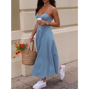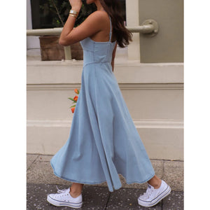 Smocked Sweetheart Neck Midi Cami Dress
