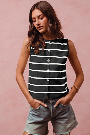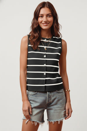 SO ME Button Front Stripe Fine Sweater Sleeveless Top