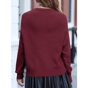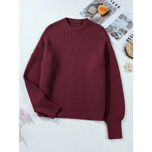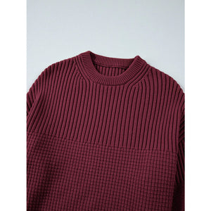 Solid Color Mixed Textured Knitted Crew Neck Sweater